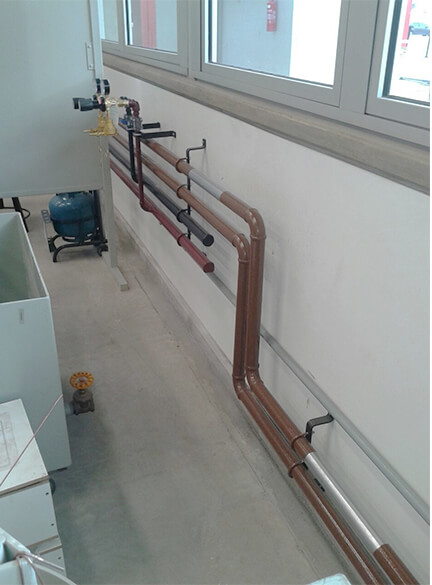 Execuções em tubulações de cobre ou aço inox, postos de consumo e manutenção