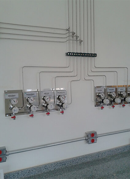 Instalação de gases industriais, tubulações de aço inox, cobre, aço carbono e alumínio.